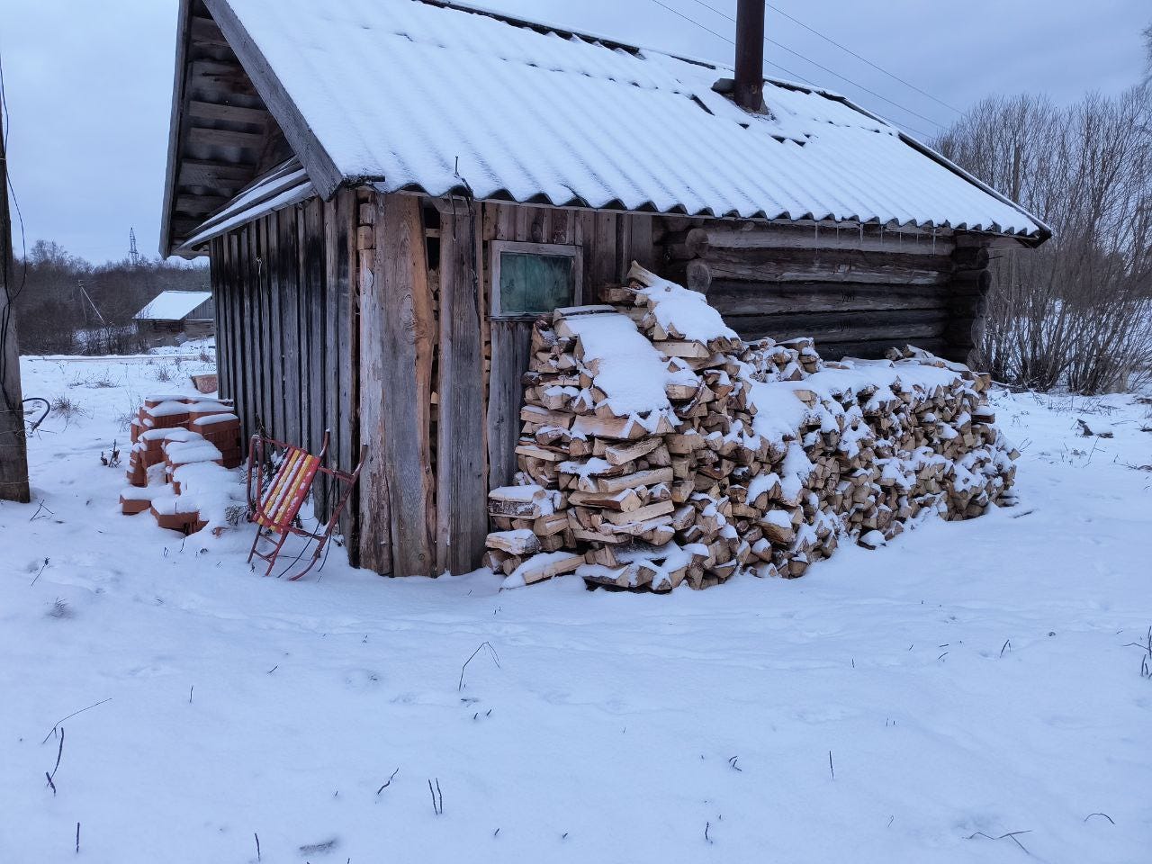 I also made an emergency stash of unburnable wet wood behind the banya. Just in case.