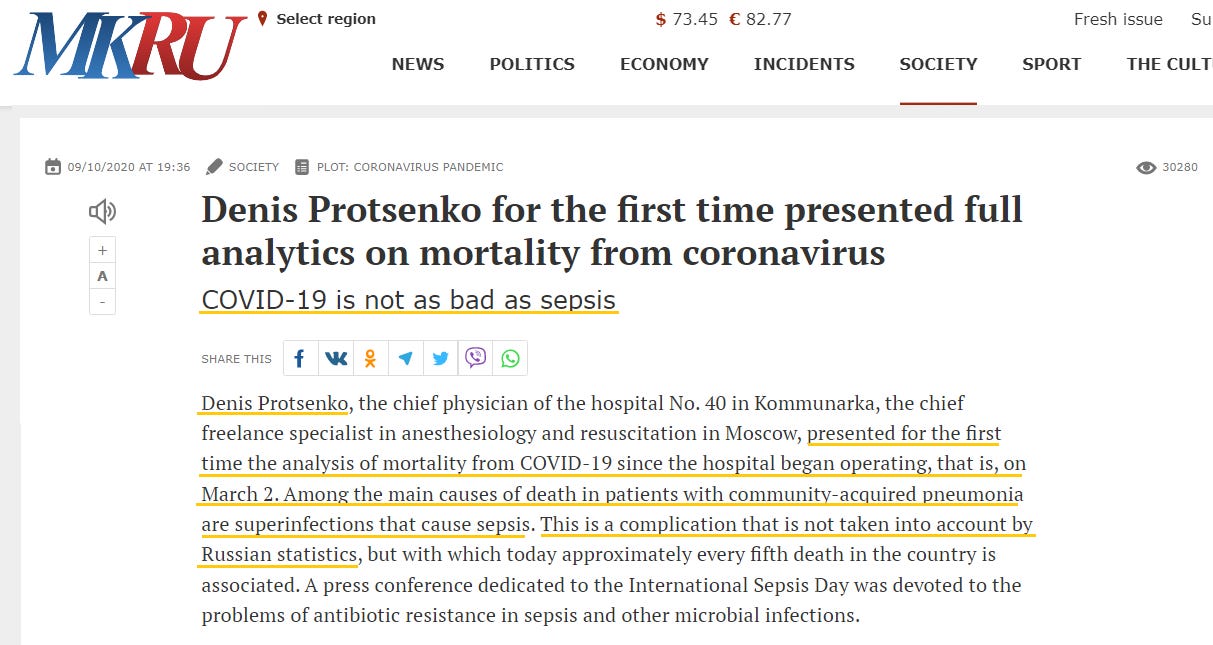 In other words: a majority of “coronavirus” deaths at Russia’s most prestigious COVID ward are caused by hospital-transmitted superbugs that trigger organ failure. Coronavirus is a real killer.