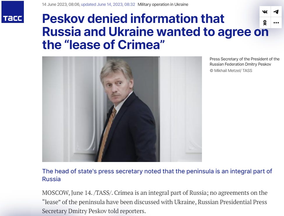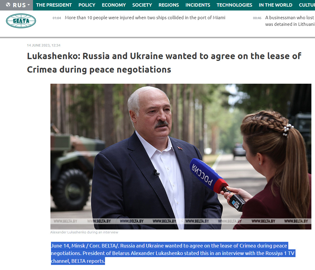 The good news is that Kremlin spokesman and truth connoisseur Dmitry Peskov fact-checked Lukashenko’s slanderous claim about Moscow offering to lease Crimea. Verdict: FAKE NEWS.