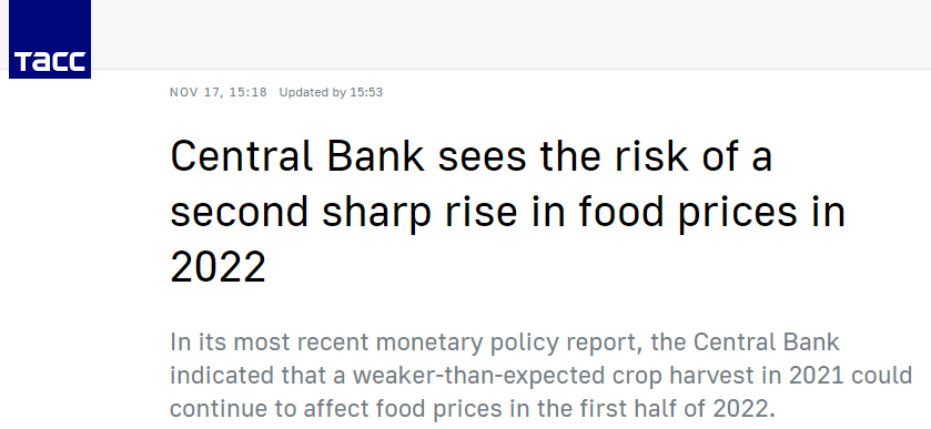 The Russian economy has been “stagnant” since February and is currently wallowing in an “inflationary stupor.” Russia’s Central Bank recently warned of a “sharp rise” in food prices next year—not great news considering a very large number of Russians are reportedly at risk of poverty-related demise.
