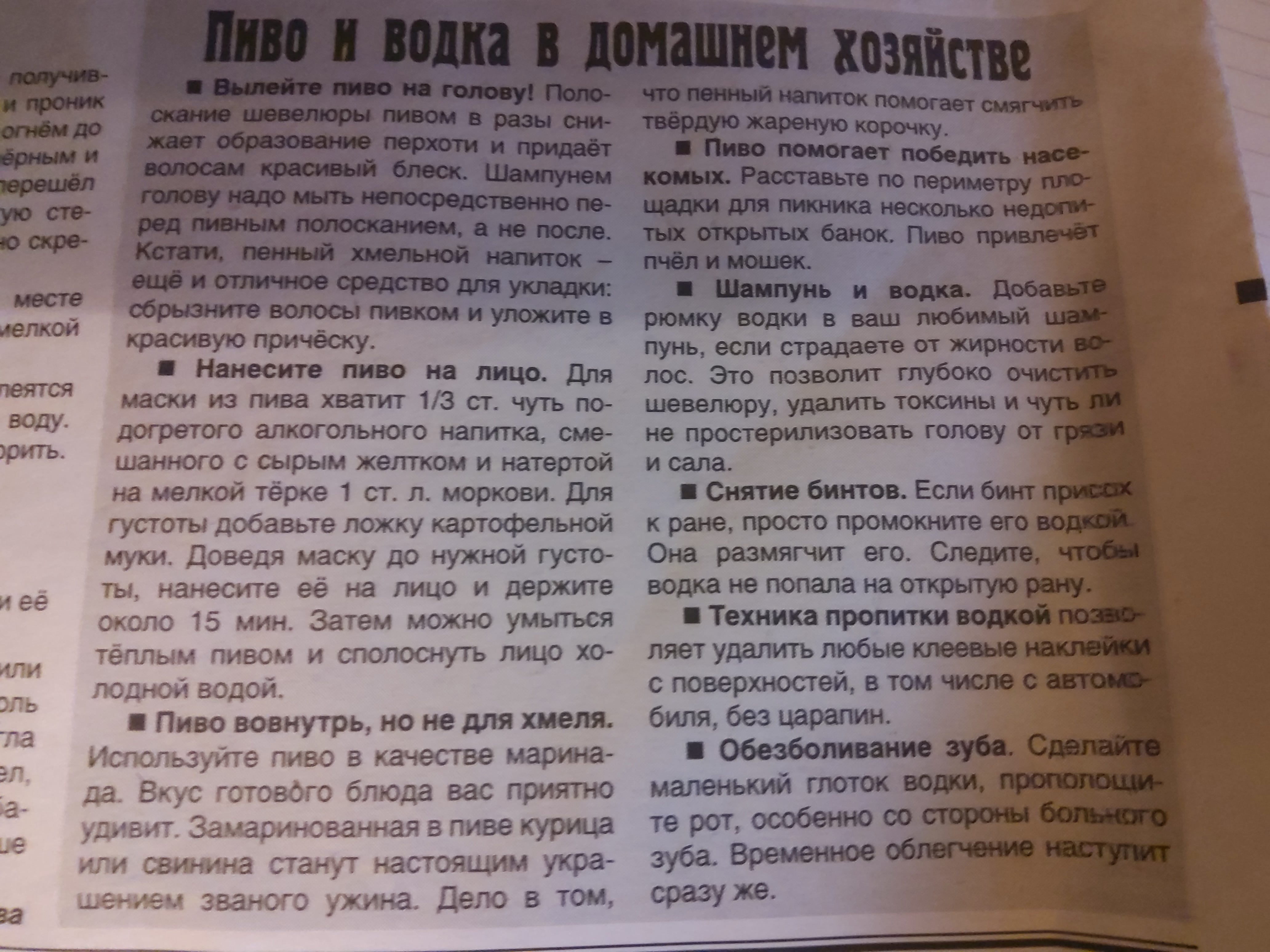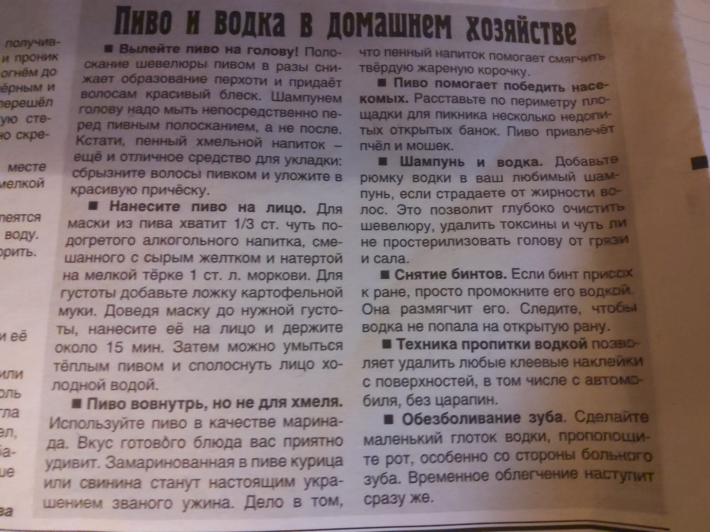 For example, did you know there are many alternative uses for alcoholic beverages? Newspapers don’t lie: