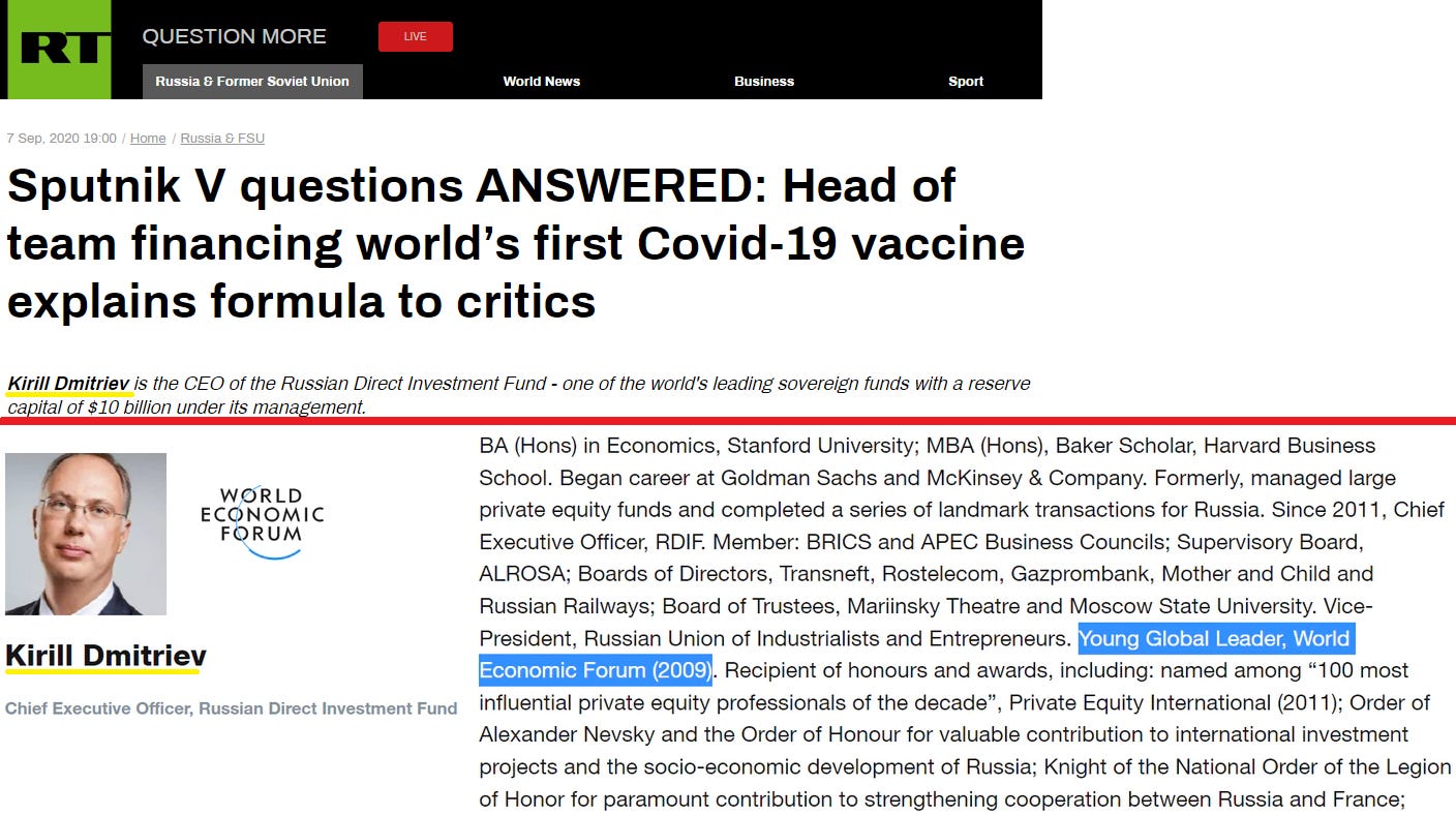 He cited an RT op-ed written by Kirill Dmitriev, a WEF Young Global Leader.