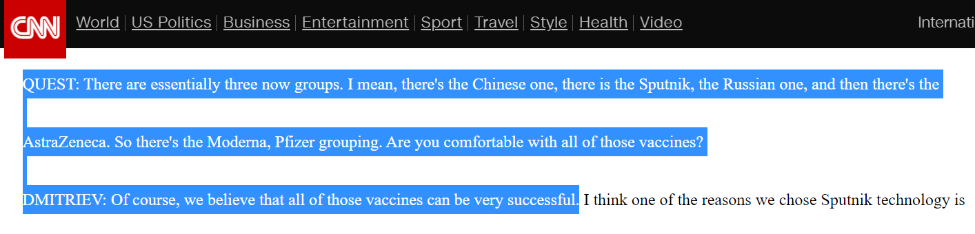 In a December 2020 interview with CNN, Dmitriev said he believed all COVID vaccines—including mRNA shots—“can be very successful” and welcomed closer cooperation with Big Pharma. (Two Russian government-operated research centers announced in September 2022 that they were developing their own mRNA “vaccines.”)